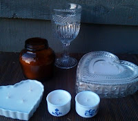 Start collecting glass containers from anywhere you can find. In the picture to the right you'll see that I have a B&M baked bean jar, sake cups, water goblets and some miscellaneous heart shaped containers. Most of these were yard sale items and many mismatched pieces that wouldn't find much use elsewhere. A word of caution when selecting your containers: If you pick clear glass, I recommend selecting glass that is textured. Why? Wet spots will happen, even in soy candles sold in retail stores. Don't worry, there is nothing wrong with your candle and it isn't actually wet, it will just look like the wax didn't ever dry in one spot. It isn't very pretty and it will bug you, the texture disguises it.